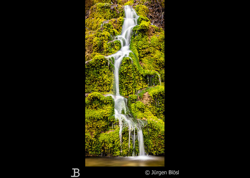 Der Wasserfall ist durch ein künstliches Becken in zwei Teile geteilt. Der obere Teil befindet sich direkt unterhalb des Weges, der Dich hier her geführt hat. Um zum unteren Teil zu gelangen, folgst Du einem steilen Pfad in der Nähe des Falls. Dieser Wasserfall ist nicht so beeindruckend wie der Uracher Wasserfall, aber für meinen Geschmack ist er der ästhetischere.