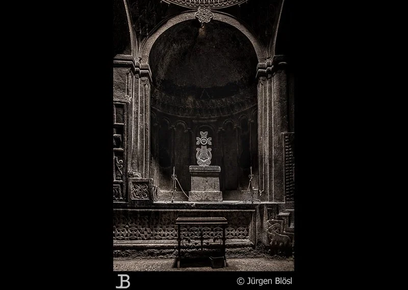 The monastery, first hit by the Turks and finally abandoned during the Russian occupation, is very interesting to explore, with many additional rooms and caves. Photographing is difficult as it’s quite dark and using tripods in the small and often crowded rooms is not an option. I didn't take mine with me during the daytime at all. One of the caves has a sensational acoustic as a singing woman demonstrates.
